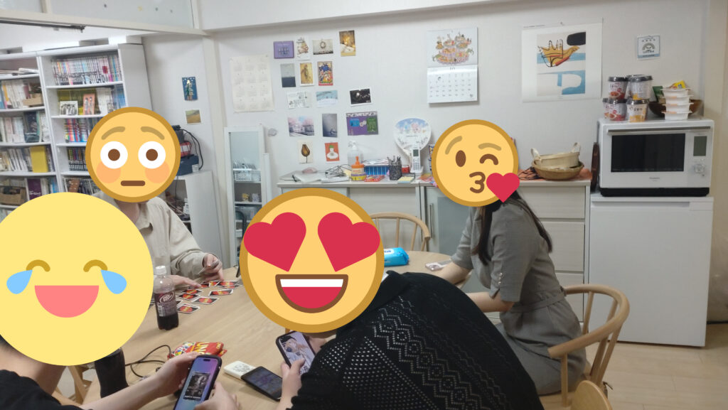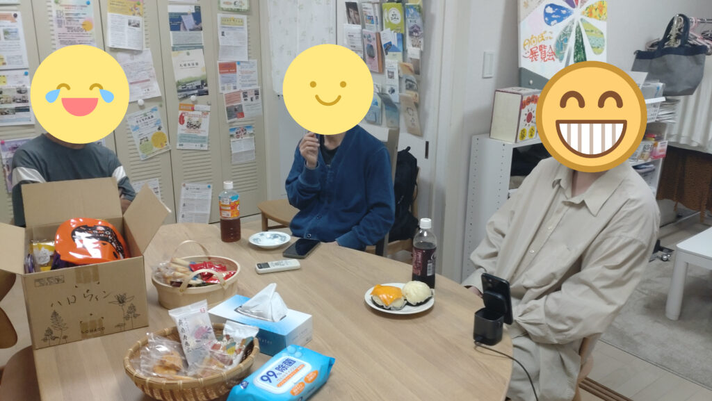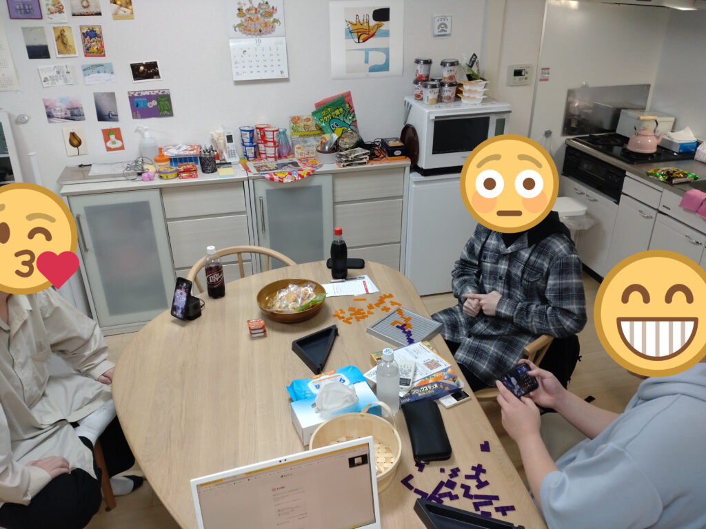 2025/11/06 10月のサロンの様子 今月は、12回のサロンを行いました。大阪に移住した方が、東京への出張ついでにサロンに寄って下さったり、お出かけサロンでゲットしたブロックスという新しいボードゲームで盛り上がったりと、10月も穏やかなサロンでした。 お出かけサロンでは、児童養護施設「錦華学院」よりお声がけいただき、学院で開かれているお祭りに行きました。大盛況のお祭りの中、たこ焼きを食べたりバザーでボードゲームを購入したりしました。その後近くのカフェに入り、パンケーキを食べて楽しみました。