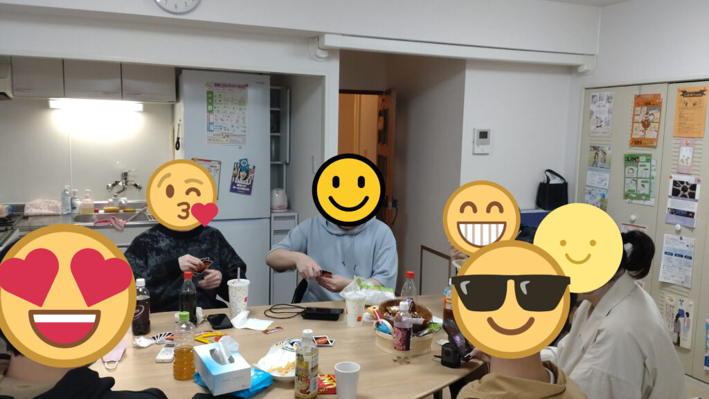今月は、13回のサロンを行いました。日頃からお世話になっている弁護士の方もサロンに参加して下さり、一緒に4人対専用のボードゲームの「ブロックス」や「UNO」をやりました。弁護士の方が相手だったこともあり、白熱した試合になりました。