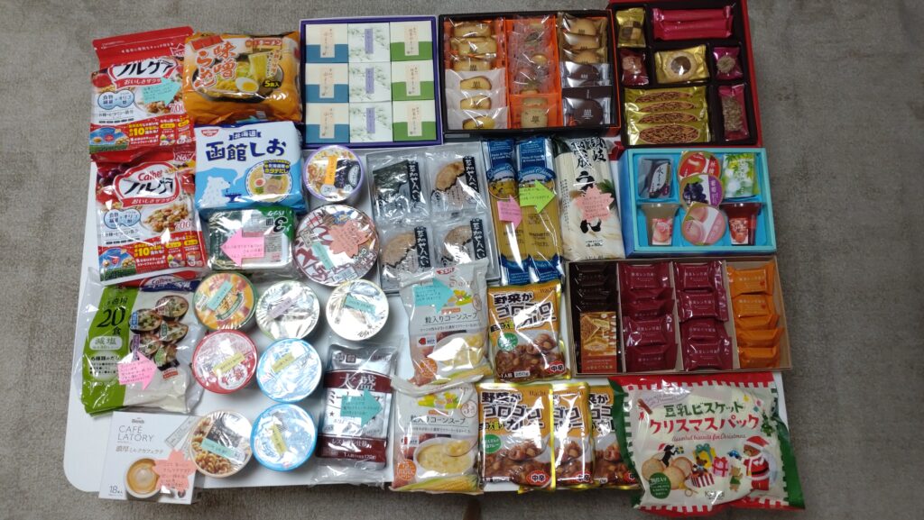 ・ご寄付物品 お米、食料、お菓子、みかん、洋服、カレンダー
