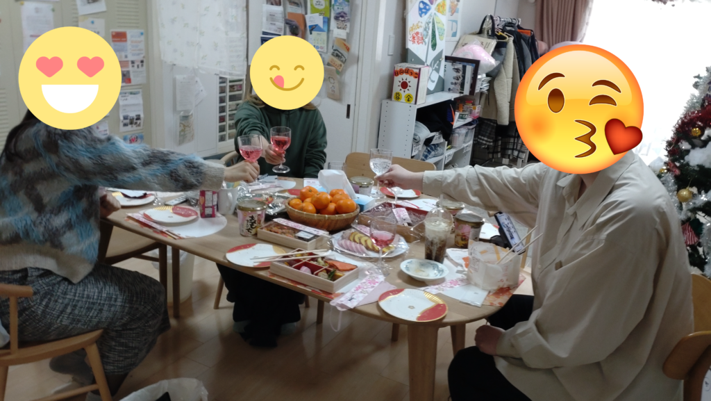 2026/01/05 お正月サロン 今年も1月1日、2日、3にとお正月サロンを実施しました。3日連続で参加してくださる方や必ずご挨拶を兼ねてお正月サロンに参加してくださる方、また、食料支援をお送りしている方で東京に帰省されてる方も、お礼を兼ねて来てくださいました。 元旦は、みんなで近くの神社に、昨年買った破魔矢とお飾りを持って行き、新しい破魔矢を買ってきました。おみくじを引いた方もいて、大吉や中吉が出て大騒ぎでした。